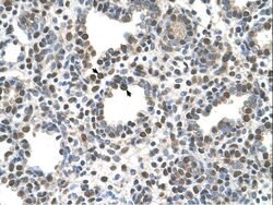 - ZDHHC13 antibody ARP44398_T100-NP_001001483-ZDHHC13(zinc finger, DHHC-type containing 13) Antibody was used in IHC to stain formalin-fixed, paraffin-embedded human lung. This image was taken for the unconjugated form of this product. Other forms have not been tested.