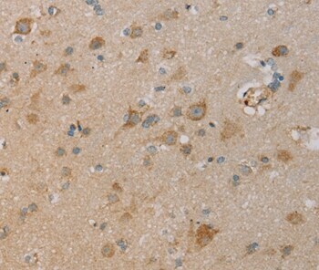 - Immunohistochemical analysis of PAGE2 in paraffin embedded Human brain tissue using PAGE2 Polyclonal Antibody (Product # PA5-50471) at a 1:20 dilution.