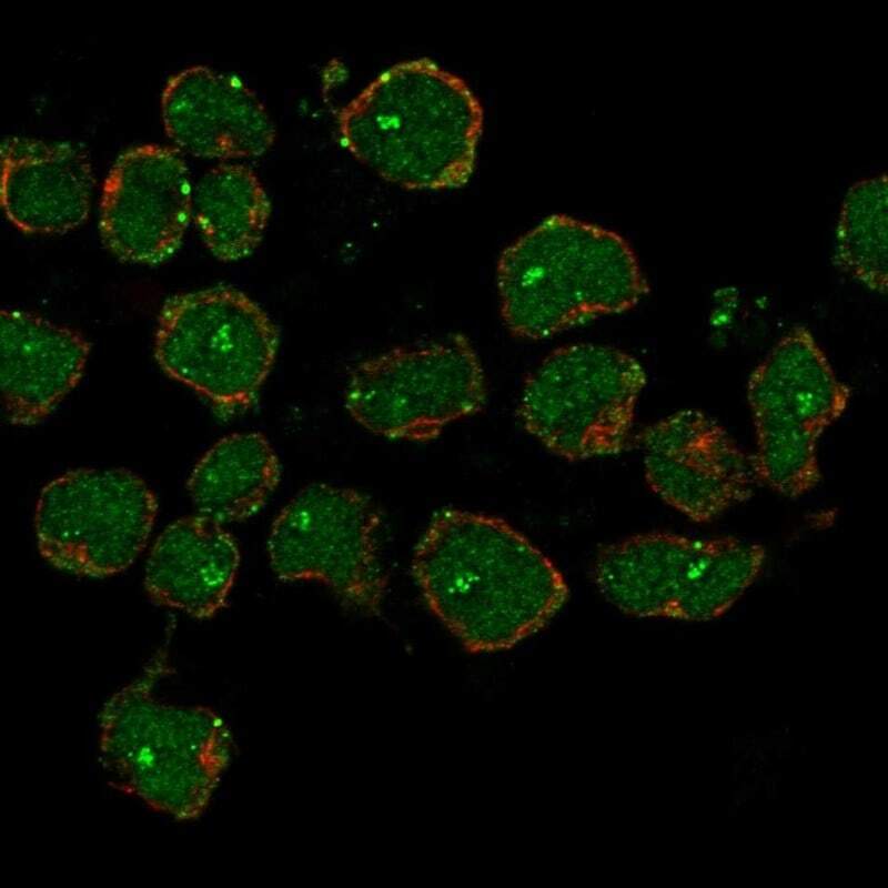 - Immunofluorescent staining of CCDC42B in human cell line REH using CCDC42B Polyclonal Antibody (Product # PA5-61765) shows localization to nucleus, nucleoli fibrillar center & vesicles.