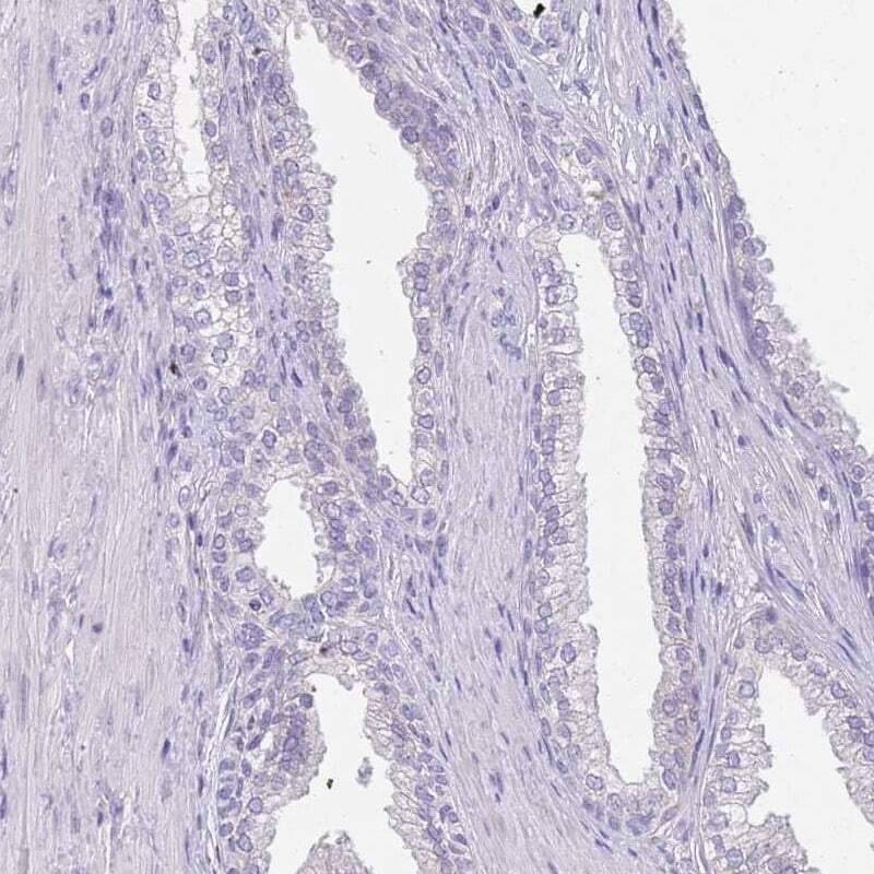 - Immunohistochemical staining of CCDC42B in human prostate using CCDC42B Polyclonal Antibody (Product # PA5-61765) shows low expression as expected.