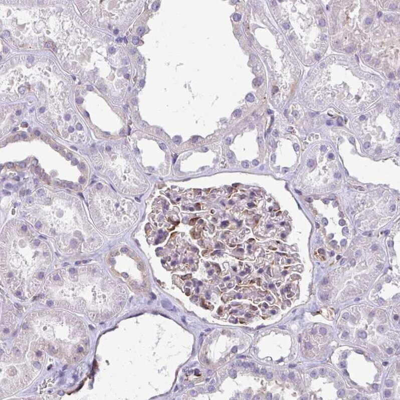 - Immunohistochemical analysis of DEPP in human kidney using DEPP Polyclonal Antibody (Product # PA5-58122) shows moderate cytoplasmic positivity in cells in glomeruli.