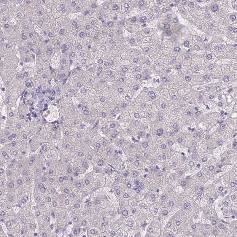 - Immunohistochemical analysis of SLC35E4 in human liver using SLC35E4 Polyclonal Antibody (Product # PA5-62009) shows no positivity in hepatocytes as expected.