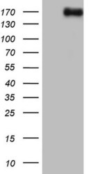 - HEK293T cells were transfected with the pCMV6-ENTRY control (Left lane) or pCMV6-ENTRY NCOA2 (RC212235, Right lane) cDNA for 48 hrs and lysed. Equivalent amounts of cell lysates (5 µg per lane) were separated by SDS-PAGE and immunoblotted with anti-NCOA2. Positive lysates LY401959 (100 µg) and LC401959 (20 µg) can be purchased separately from OriGene.