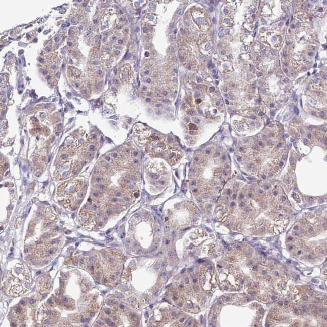 - Immunohistochemical analysis of IGIP in human stomach using IGIP Polyclonal Antibody (Product # PA5-61783) shows moderate cytoplasmic positivity in glandular cells.