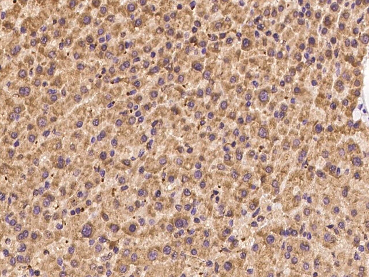 - Immunohistochemistry analysis of PET117 in formalin-fixed paraffin embedded human liver sections. Samples were incubated with PET117 polyclonal antibody (Product # PA5-148329) using a dilution of 1:100.