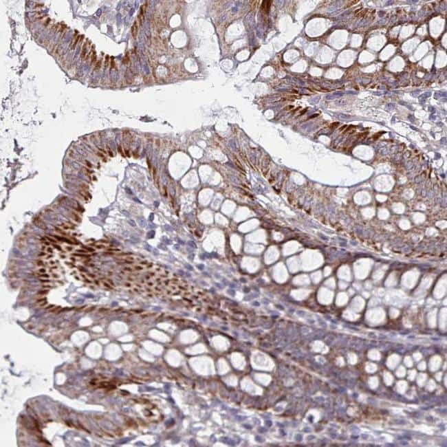 - Immunohistochemical analysis of C3orf36 in human colon using C3orf36 Polyclonal Antibody (Product # PA5-61240) shows strong cytoplasmic positivity in glandular cells.