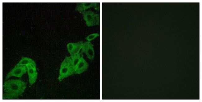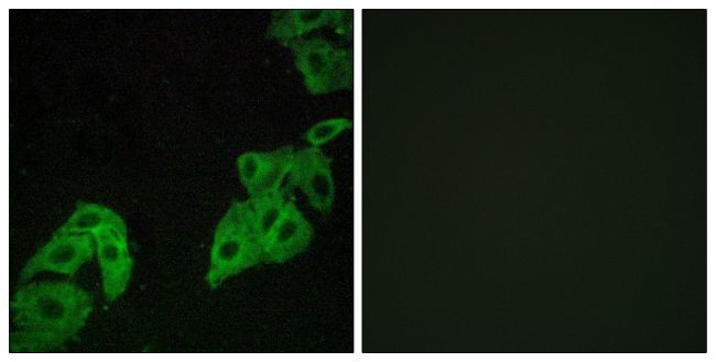 - Immunofluorescent analysis of OR4C3 in A549 cells using an OR4C3 polyclonal antibody (Product # PA5-38229).