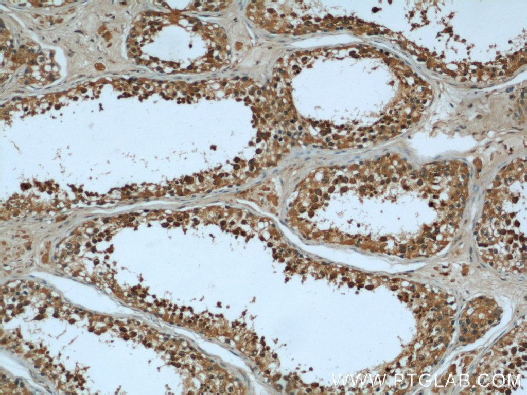 - Immunohistochemical of paraffin-embedded human testis using 55409-1-AP(KHSRP antibody) at dilution of 1:50 (under 10x lens)