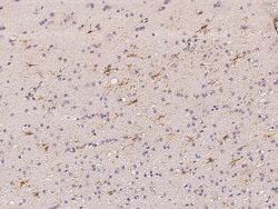 - Immunohistochemistry analysis of TRIM64C in formalin-fixed paraffin embedded human brain sections. Samples were incubated with TRIM64C polyclonal antibody (Product # PA5-148361) using a dilution of 1:100.
