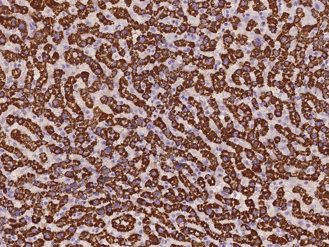 - Immunohistochemistry analysis of SBNO2 in formalin-fixed paraffin embedded human liver sections. Samples were incubated with SBNO2 polyclonal antibody (Product # PA5-148389) using a dilution of 1:100.