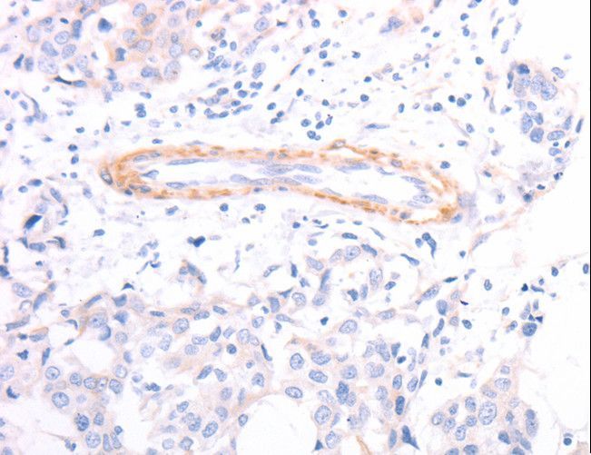 - Immunohistochemistry of paraffin-embedded Human breast cancer using TPM1 Polyclonal Antibody at dilution of 1:40.