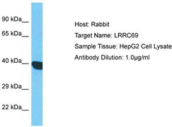- Host: Rabbit; Target Name: LRRC69; Sample Tissue: HepG2 Whole Cell lysates; Antibody Dilution: 1.0ug/ml