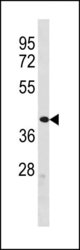 - ZFP92 Antibody (N-term) (ABIN1882009) western blot analysis in human Uterus tissue lysates (35 μg/lane). This demonstrates the ZFP92 antibody detected the ZFP92 protein (arrow).