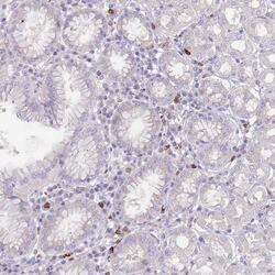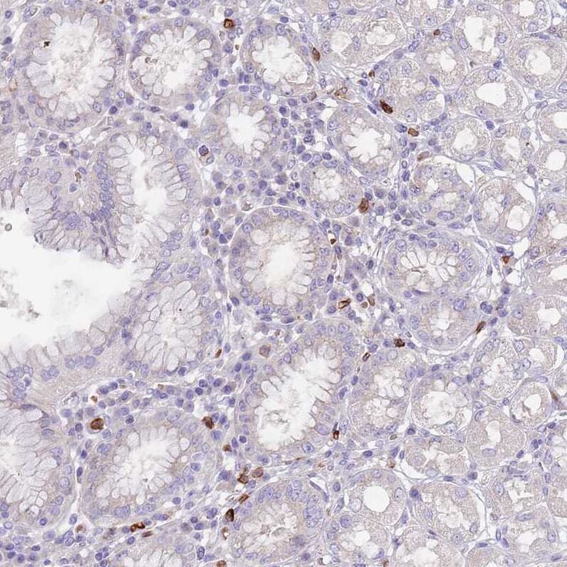 - Immunohistochemical analysis of TMEM251 in human stomach using TMEM251 Polyclonal Antibody (Product # PA5-61769) shows moderate membranous and cytoplasmic positivity in leukocytes.