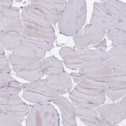 - Immunohistochemical analysis of TMEM251 in human skeletal muscle using TMEM251 Polyclonal Antibody (Product # PA5-61769) shows no positivity in myocytes as expected.