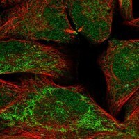 - Immunofluorecent analysis of IGSF22 in human cell line RH-30 using IGSF22 Polyclonal Antibody (Product # PA5-139794). Staining shows localization to mitochondria.