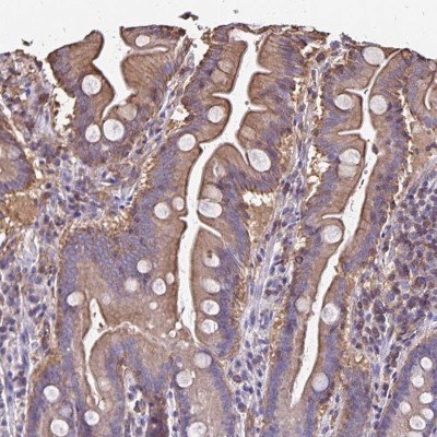 - Immunohistochemistry: RPRML Antibody [NBP2-37999] - Staining of human small intestine shows moderate cytoplasmic and membranous positivity in glandular cells.