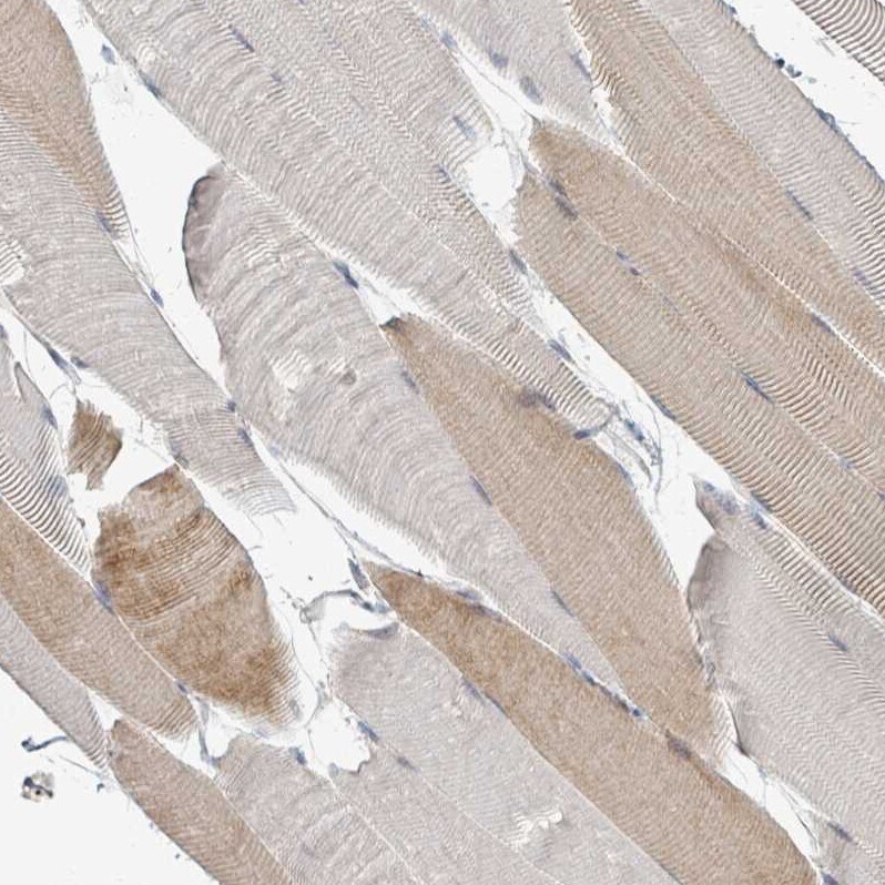 - Immunohistochemical analysis of C7orf26 in human skeletal muscle using C7orf26 Polyclonal Antibody (Product # PA5-62565) shows weak cytoplasmic positivity in myocytes.