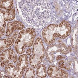 - Immunohistochemistry: TTLL13 Antibody [NBP2-13492] - Staining of human kidney shows strong cytoplasmic positivity in cells in tubules.
