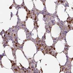 - Immunohistochemical analysis of TDRD15 in human bone marrow using TDRD15 Polyclonal Antibody (Product # PA5-63003) shows strong cytoplasmic positivity in subset of hematopoietic cells.