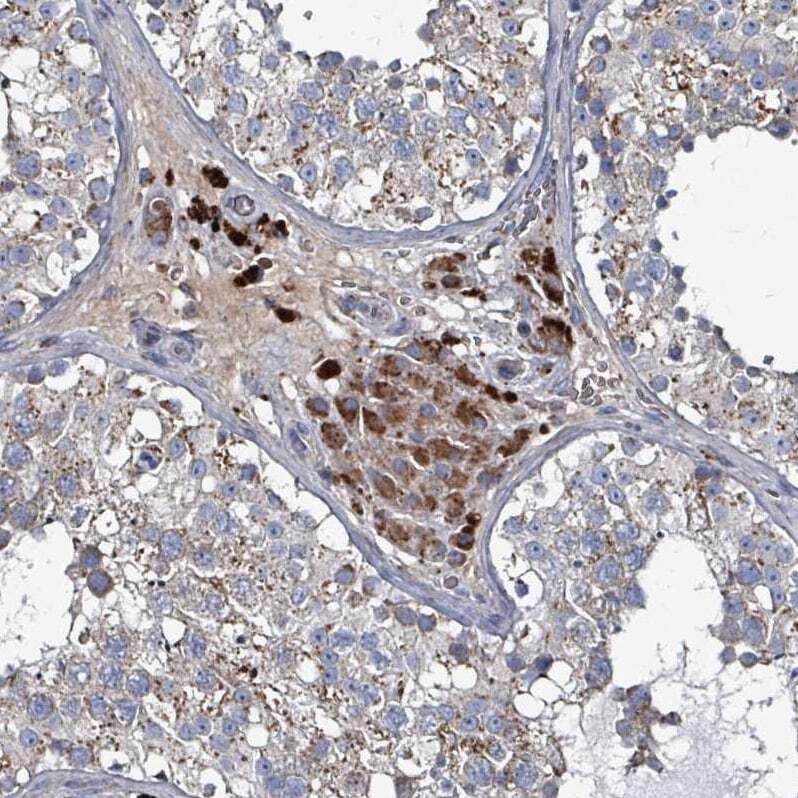 - Immunohistochemical analysis of C4orf29 in human testis using C4orf29 Polyclonal Antibody (Product # PA5-62150) shows strong cytoplasmic positivity in Leydig cells.
