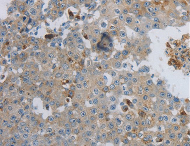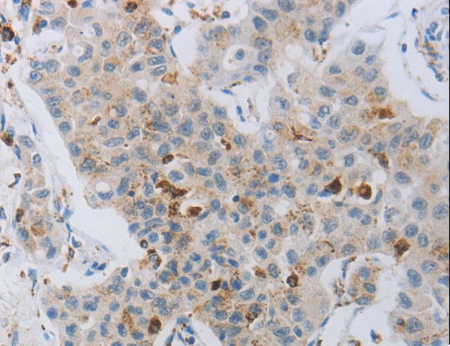 - Immunohistochemistry of paraffin-embedded Human lung cancer using CKMT1A/CKMT1B Polyclonal Antibody at dilution of 1:100.
