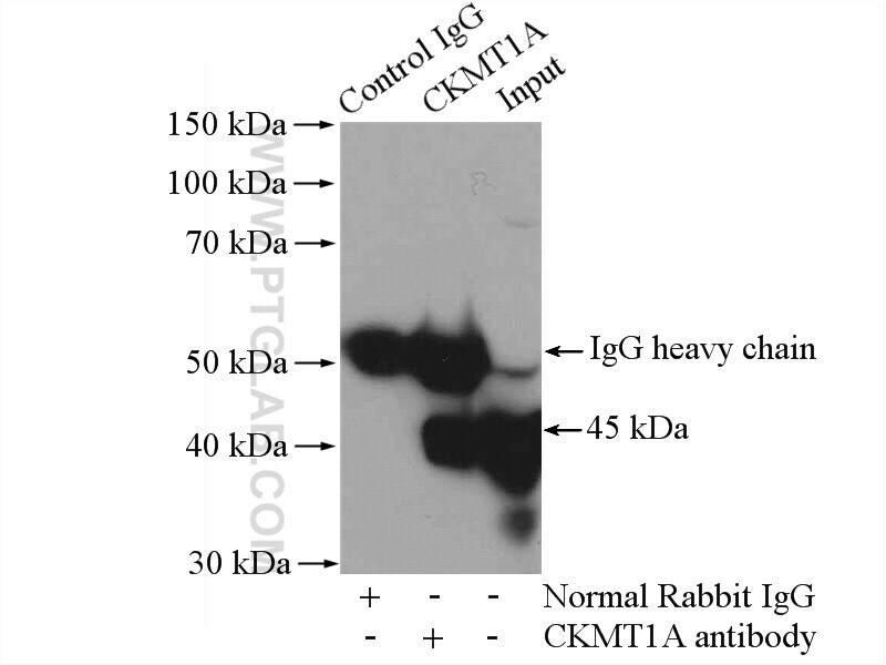 - IP result of anti-CKMT1A (IP:15346-1-AP, 4ug; Detection:15346-1-AP 1:1000) with mouse heart tissue lysate 3200ug.