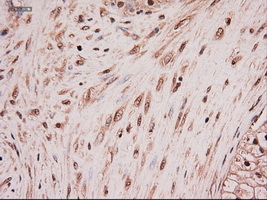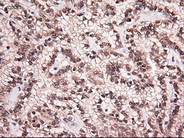 - Immunohistochemical staining of paraffin-embedded Adenocarcinoma of colon using anti-NTF4 mouse monoclonal antibody.