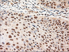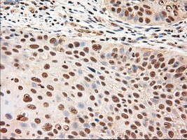 - Immunohistochemical staining of paraffin-embedded Carcinoma of lung using anti-NTF4 mouse monoclonal antibody.
