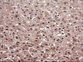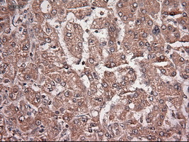- Immunohistochemical staining of paraffin-embedded liver using anti-NTF4 mouse monoclonal antibody.