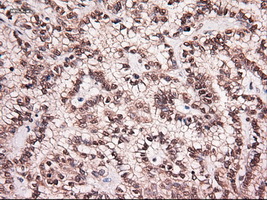 - Immunohistochemical staining of paraffin-embedded Carcinoma of kidney using anti-NTF4 mouse monoclonal antibody.
