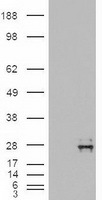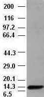 - HEK293T cells were transfected with the pCMV6-ENTRY control (Left lane) or pCMV6-ENTRY NTF4 (Right lane) cDNA for 48 hrs and lysed. Equivalent amounts of cell lysates (5 ug per lane) were separated by SDS-PAGE and immunoblotted with anti-NTF4.