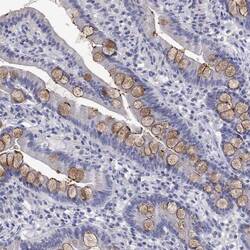 - Immunohistochemical analysis of FER1L6 in human small intestine using FER1L6 Polyclonal Antibody (Product # PA5-62925) shows strong membranous positivity in goblet cells.