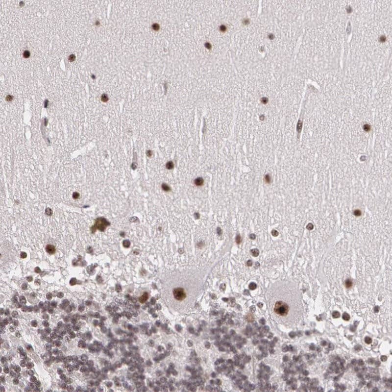 - Immunohistochemical analysis of C6orf15 in human cerebellum using C6orf15 Polyclonal Antibody (Product # PA5-51577) shows strong nuclear positivity in purkinje cells and cells of molecular layer.