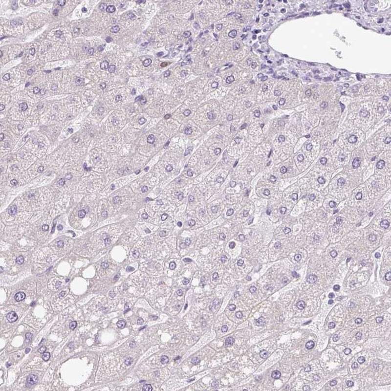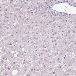 - Immunohistochemical staining of Hemicentin 2 in human liver using Hemicentin 2 Polyclonal Antibody (Product # PA5-62868) shows low expression as expected.