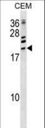 - ATF3 Antibody western blot of CEM cell line lysates (35 ug/lane). The ATF3 antibody detected the ATF3 protein (arrow).