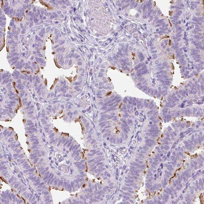 - Immunohistochemical analysis of TMEM89 in human fallopian tube using TMEM89 Polyclonal Antibody (Product # PA5-62811) shows strong membranous positivity in glandular cells.