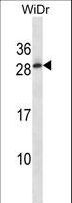 - C11orf20 Antibody western blot of WiDr cell line lysates (35 ug/lane). The C11orf20 antibody detected the C11orf20 protein (arrow).