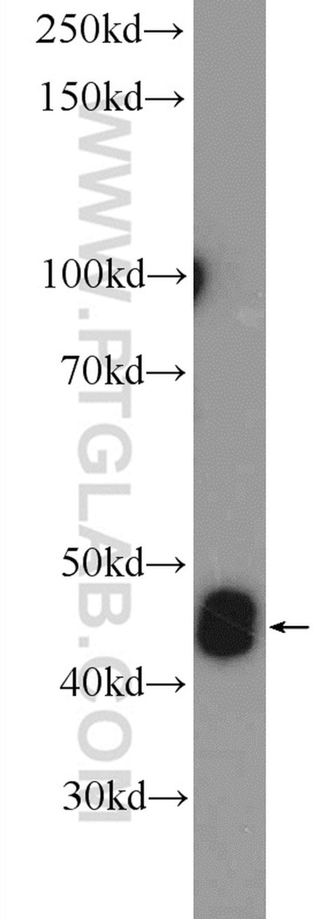 - Mouse testis tissue were subjected to SDS PAGE followed by western blot with 17064-1-AP ( CALR3 Antibody) at dilution of 1:300 incubated at room temperature for 1.5 hours.