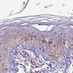 - Immunohistochemical staining of LCNL1 in human skin. Samples were probed using a LCNL1 Polyclonal Antibody (Product # PA5-63829).