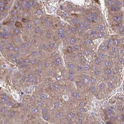 - Immunohistochemical staining of LCNL1 in human liver cancer tissue. Samples were probed using a LCNL1 Polyclonal Antibody (Product # PA5-63829).