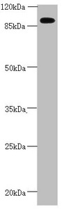 - Western blot All Lanes:CEP95 antibody at 2.67 ug/ml+ Mouse heart tissue Secondary Goat polyclonal to rabbit IgG at 1/10000 dilution Predicted band size: 96,77 kDa Observed band size: 95 kDa