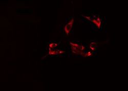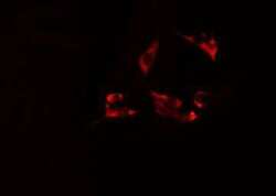 - Immunofluorescent analysis of CEP95 in HUVEC cells. Samples were fixed with paraformaldehyde, permeabilized with 0.1% Triton X-100, blocked with 10% serum (45 min at 25°C) incubated with CEP95 polyclonal antibody (Product # PA5-101534) using a dilution of 1:200 (1 hr, 37°C), and followed by goat anti-rabbit IgG Alexa Fluor 594 at a dilution of 1:600.