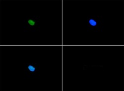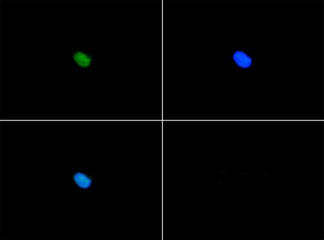 - Immunocytochemistry/Immunofluorescence: SERF1A Antibody - Serf1a antibody was tested in Ntera2 cells with FITC (green). Nuclei were counterstained with DAPI (blue). This image was taken for the unconjugated form of this product. Other forms have not been tested.