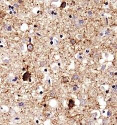 - Immunohistochemistry: SERF1A Antibody - Analysis of SERF1A in human Alzheimer's brain using DAB with hematoxylin counterstain. This image was taken for the unconjugated form of this product. Other forms have not been tested.