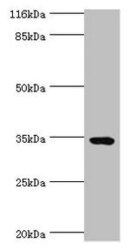 - Western blot All lanes: TMCO5A antibody at 6µg/ml + MCF-7 whole cell lysate Secondary Goat polyclonal to rabbit IgG at 1/10000 dilution Predicted band size: 35, 27 kDa Observed band size: 35 kDa
