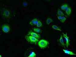 - Immunocytochemichal analysis of TMCO5A in MCF-7 cells using a Polyclonal antibody (Product # PA5-113222) at a dilution of 1:100. An Alexa Fluor 488-congugated Goat Anti-Rabbit IgG(H+L) secondary antibdoy was used.
