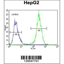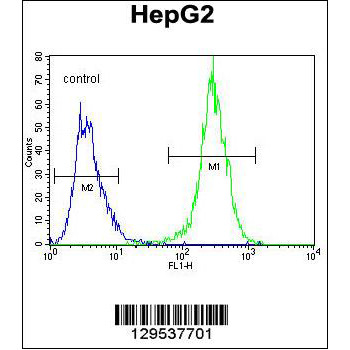 - MRFAP1L1 Antibody (Center) (Cat. #OAAB07768) flow cytometric analysis of HepG2 cells (right histogram) compared to a negative control cell (left histogram).FITC-conjugated goat-anti-rabbit secondary antibodies were used for the analysis.