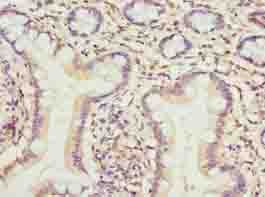 - Immunohistochemistry of paraffin-embedded human small intestine tissue using antibody at dilution of 1:100.