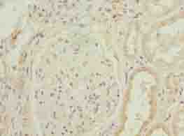 - Immunohistochemistry of paraffin-embedded human kidney tissue using antibody at dilution of 1:100.